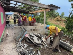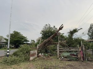 ภายใต้อำนวยการของ ว่าที่ พ.ต.อ.อรรณนพ นุ่มสวน ผกก.สภ.ด่านทับตะโก มอบหมายให้ พ.ต.ท.พรชัย สวัสดิผล สว.อก.สภ.ด่านทับตะโก พร้อม ข้าราชการตำรวจจิตอาสา สภ.ด่านทับตะโก ดำเนินกิจกรรมจิตอาสาบำเพ็ญสาธารณประโยชน์ ช่วยประชาชนที่ได้รับความเสียหายจากวาตภัย ตัดกิ่งไม้ ปรับปรุงภูมิทัศน์ เคลื่อนย้ายสิ่งของที่จำเป็นให้แก่ประชาชน บริเวณ บ้านเรื่อนที่ได้รับความเสียหาย ต.แก้มอ้น อ. จอมบึง จ.ราชบุรี เนื่องจาก ช่่วงค่ำวันที่ 16 มี.ค.68 เกิดพายุฤดูร้อนพัดกระหน่ำส่งผลให้มีบ้านเรือนประชาชนถูกพายุพัดหลังคากระเบื้องปลิวเสียหาย มีต้นไม้ใหญ่หักโค่น พืชผลการเกษตรเสียหายก่บ้านเรือนเป็นบริเวณกว้าง