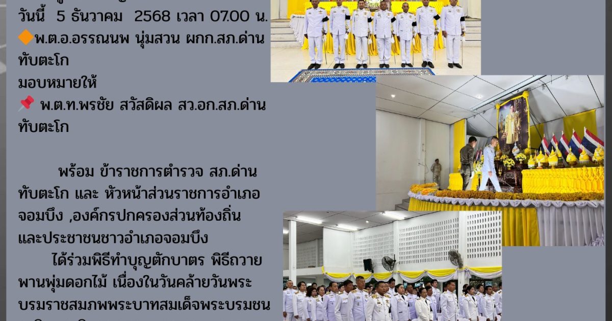 ่ร่วมพิธีเจริญพระพุทธมนต์และทำบุญตักบาตรถวายพระราชกุศล และพิธีวางพานพุ่มดอกไม้ถวายราชสักการะ เนื่องในวันชาติ และวันพ่อแห่งชาติ 2567