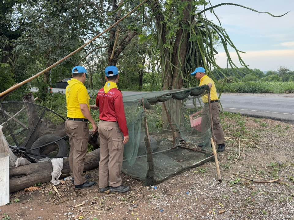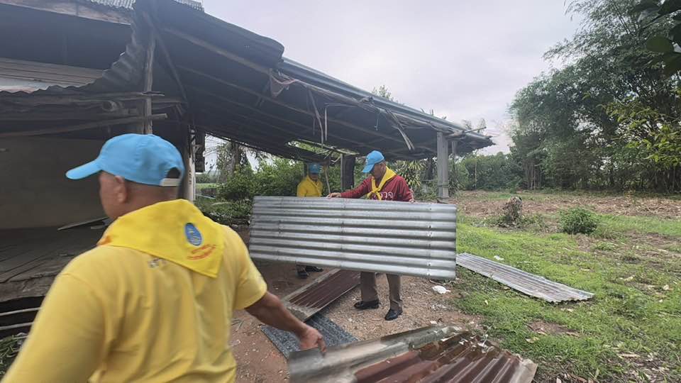 – เนื่องจาก ช่่วงค่ำวันที่ 16 มี.ค.68 เกิดพายุฤดูร้อนพัดกระหน่ำส่งผลให้มีบ้านเรือนประชาชนถูกพายุพัดหลังคากระเบื้องปลิวเสียหาย มีต้นไม้ใหญ่หักโค่น พืชผลการเกษตรเสียหาย